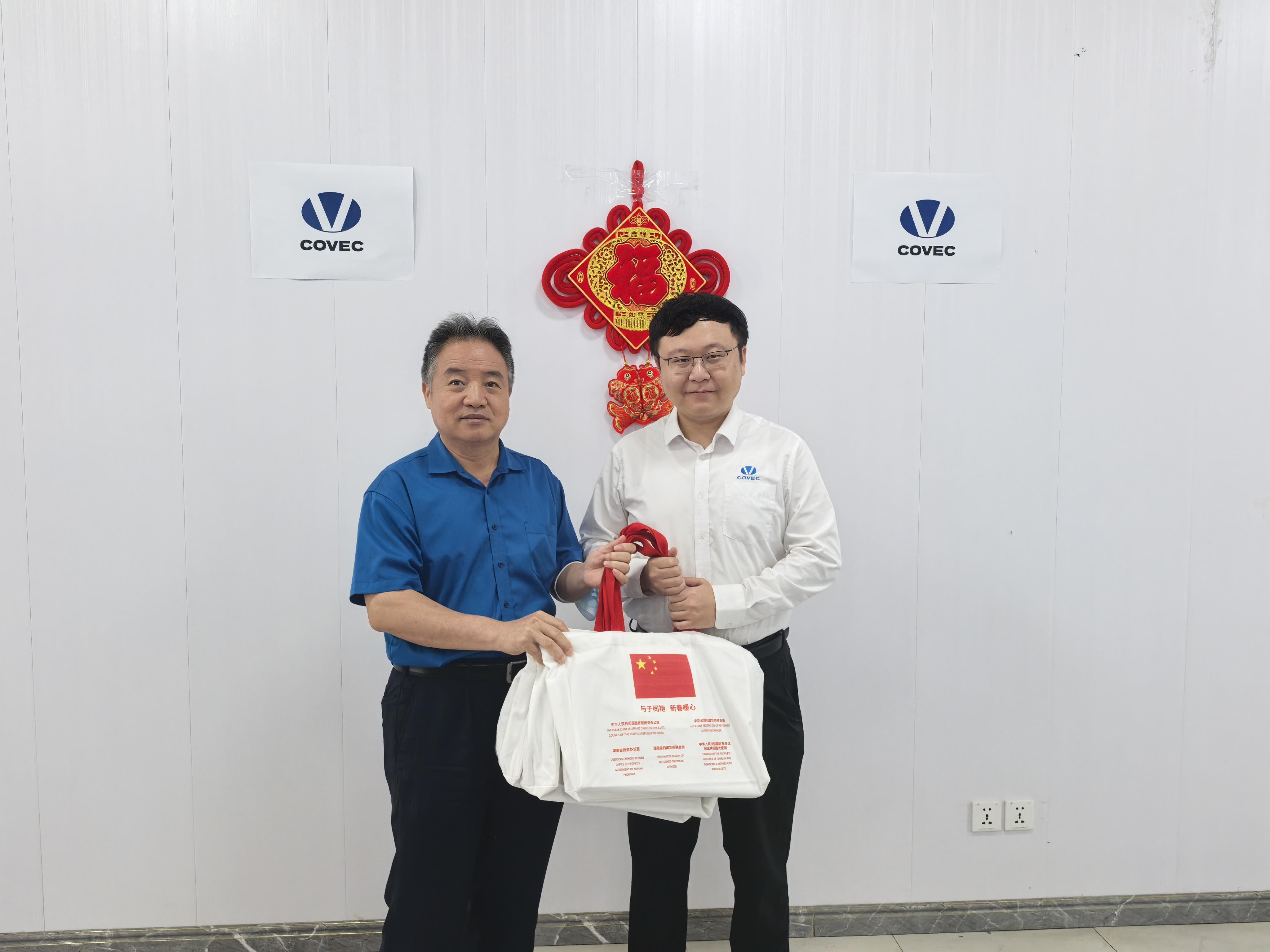 2月14日春节前夕,赵锁成参赞先后赴中国土木、中海外、山东外经等公司走访慰问,代表使馆向公司全体员工致以新春祝福,并送上“春节暖心包”。