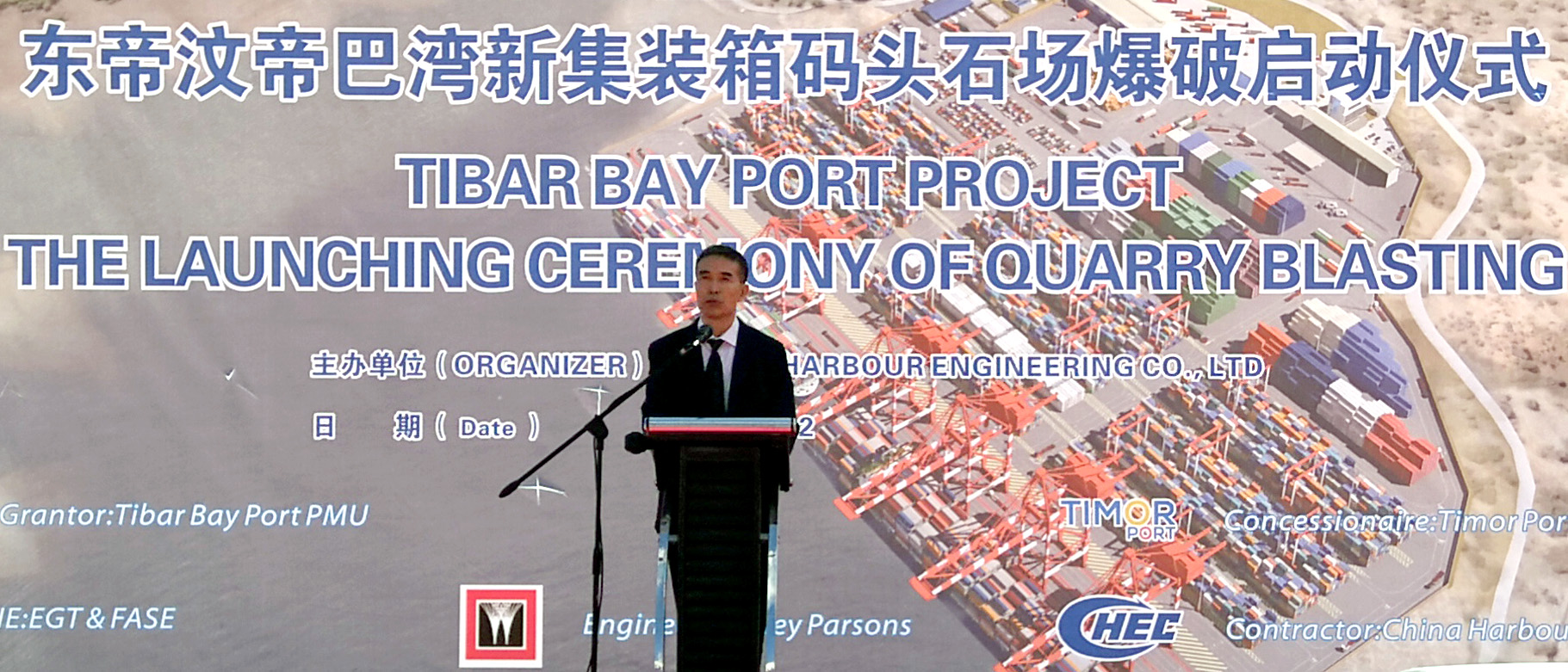 7月12日上午11时许,随着轰隆一声巨响,东帝汶帝巴湾新集装箱码头石场爆破仪式正式启动。中国驻东大使肖建国和东交通与通讯部长若泽分别在仪式上致辞。耿协威经商参赞,东农渔业部长若阿金、国防部长菲洛梅诺、前总统奥尔塔、国民警察总司令福斯蒂诺、环境国务秘书徳梅特里奥、土地与财产国务秘书马里奥等东政要以及中资企业机构和东媒体代表出席活动。