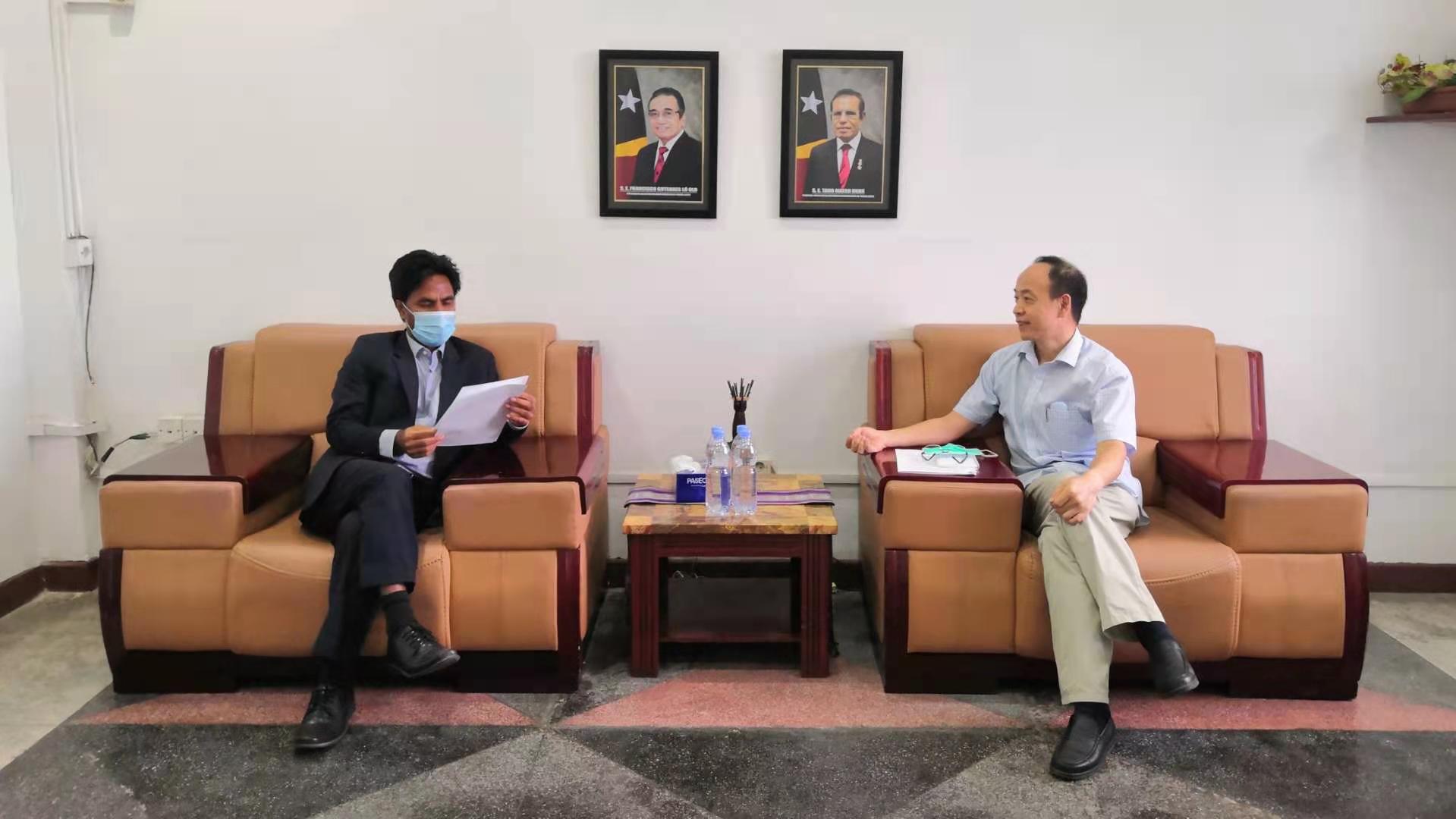 阿感谢中国政府对东帝汶人力资源发展的大力支持,表示援东学历学位教育项目意义重大,并就项目有关细节与耿参进行了深入交流。